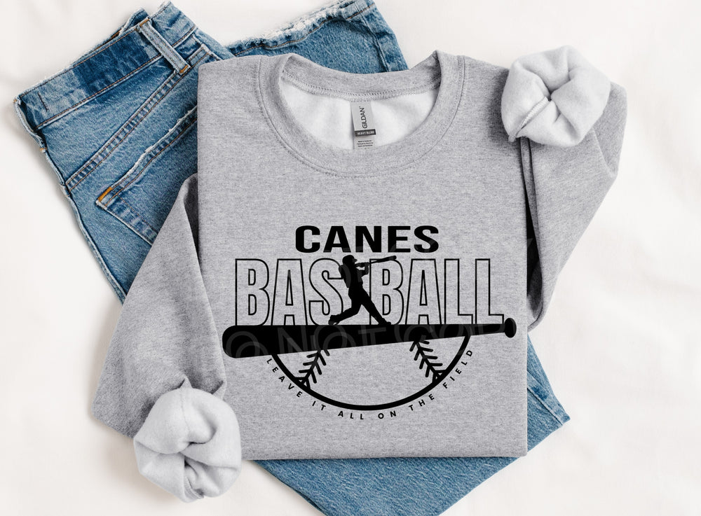 Canes Baseball BLACK INK DTF Transfer