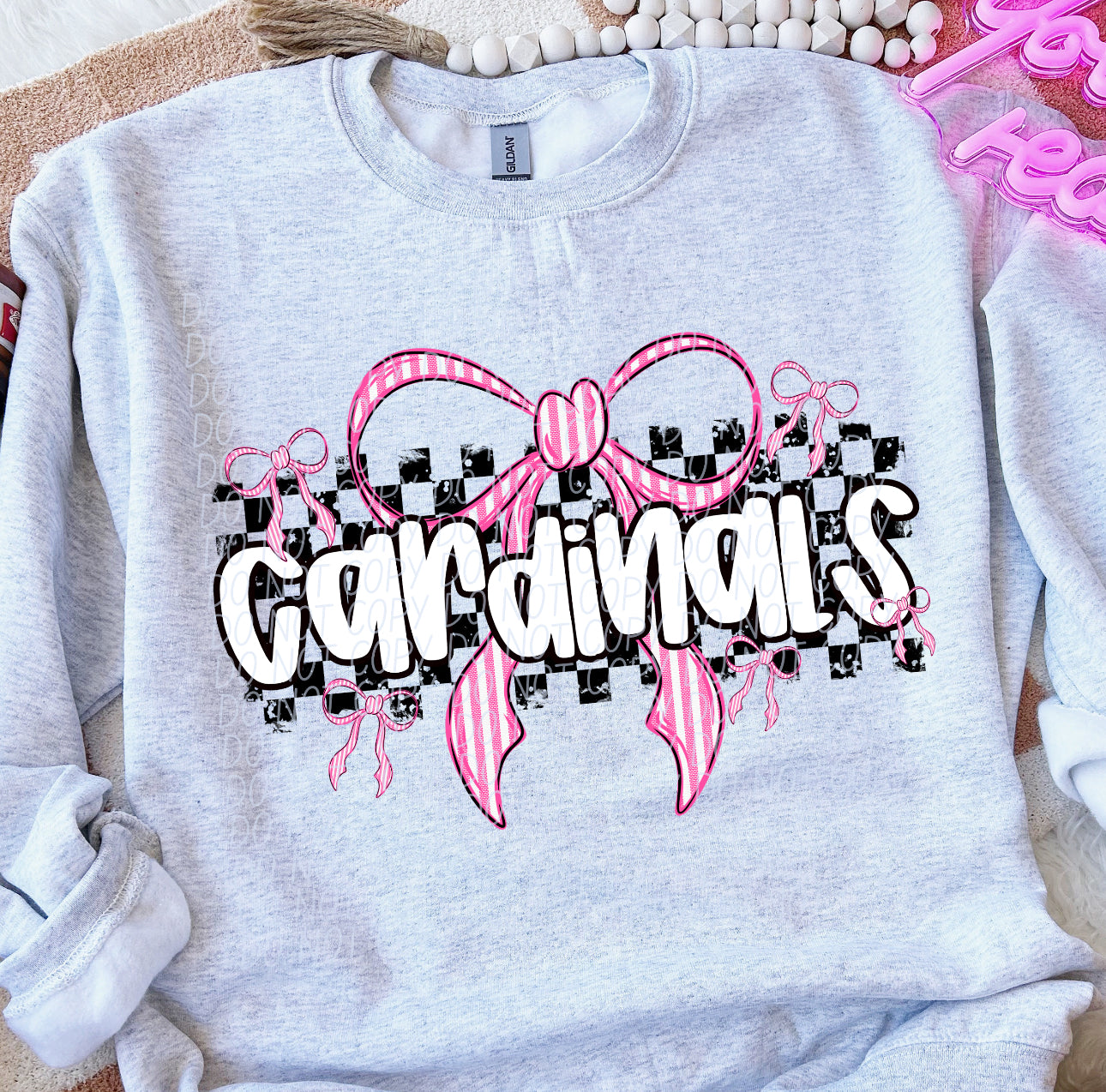 Cardinals Pink Bow with Checks Mascot DTF Transfer