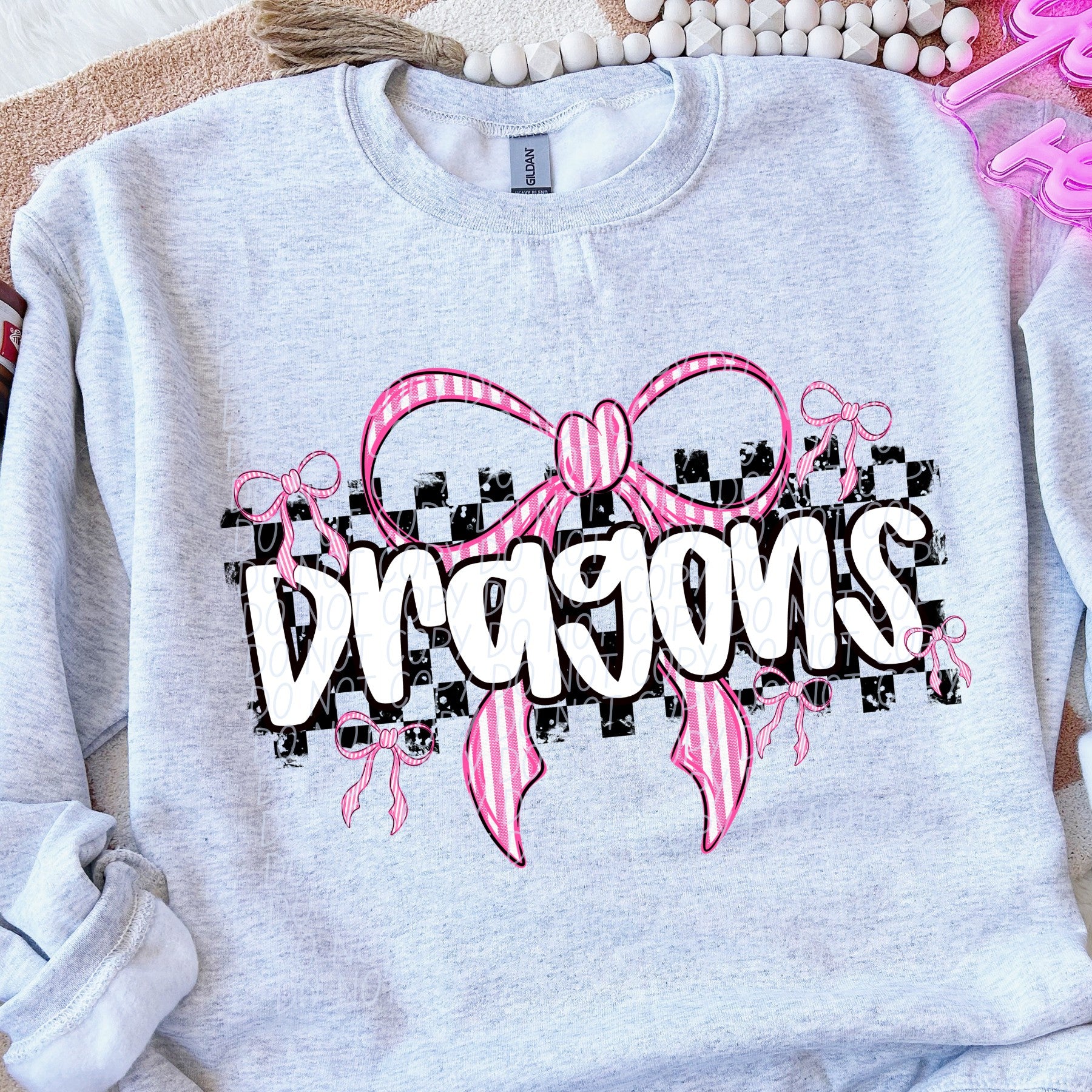 Dragons Pink Bow with Checks Mascot DTF Transfer