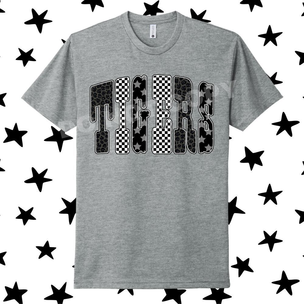 Tigers with Leopard Check Stars DTF Transfer (E)