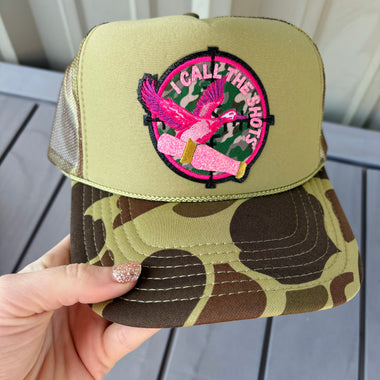 I Call the Shots Duck Camo Glitter Embroidered Patch Trucker Hat