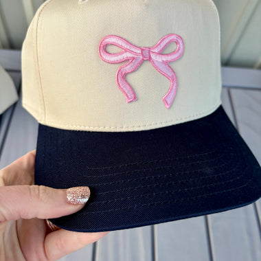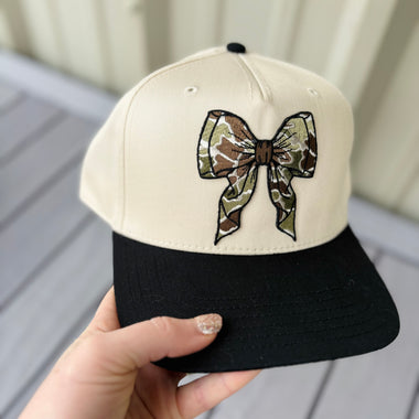 Camo Bow Coquette Embroidered Patch Classic Fit Black Bill Hat