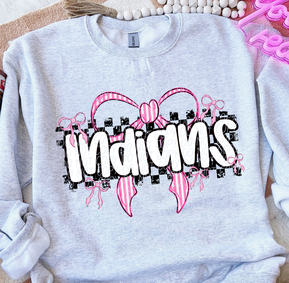 Indians Pink Bow with Checks Mascot DTF Transfer
