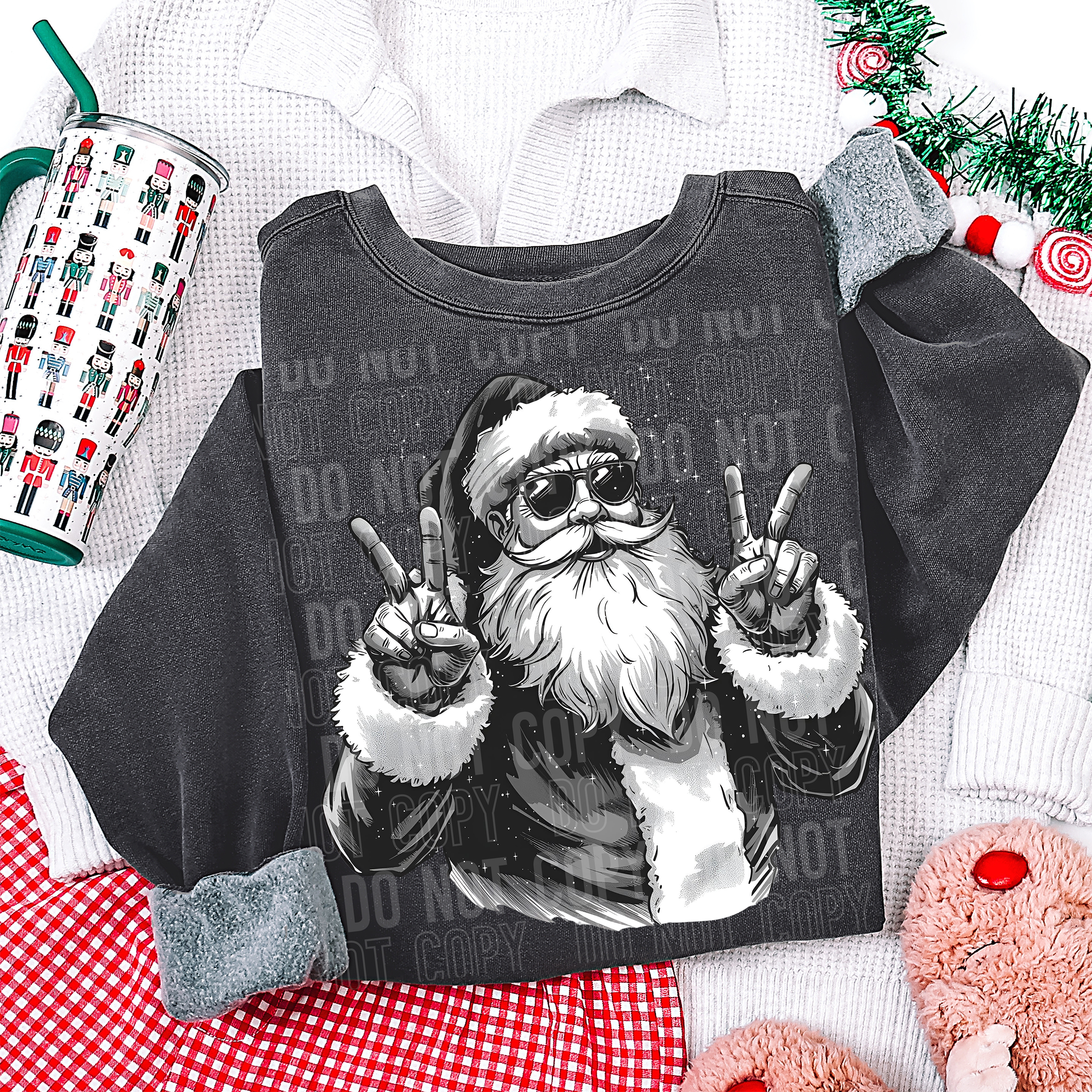 Santa Black and White Peace Christmas DTF Transfer (SBB)