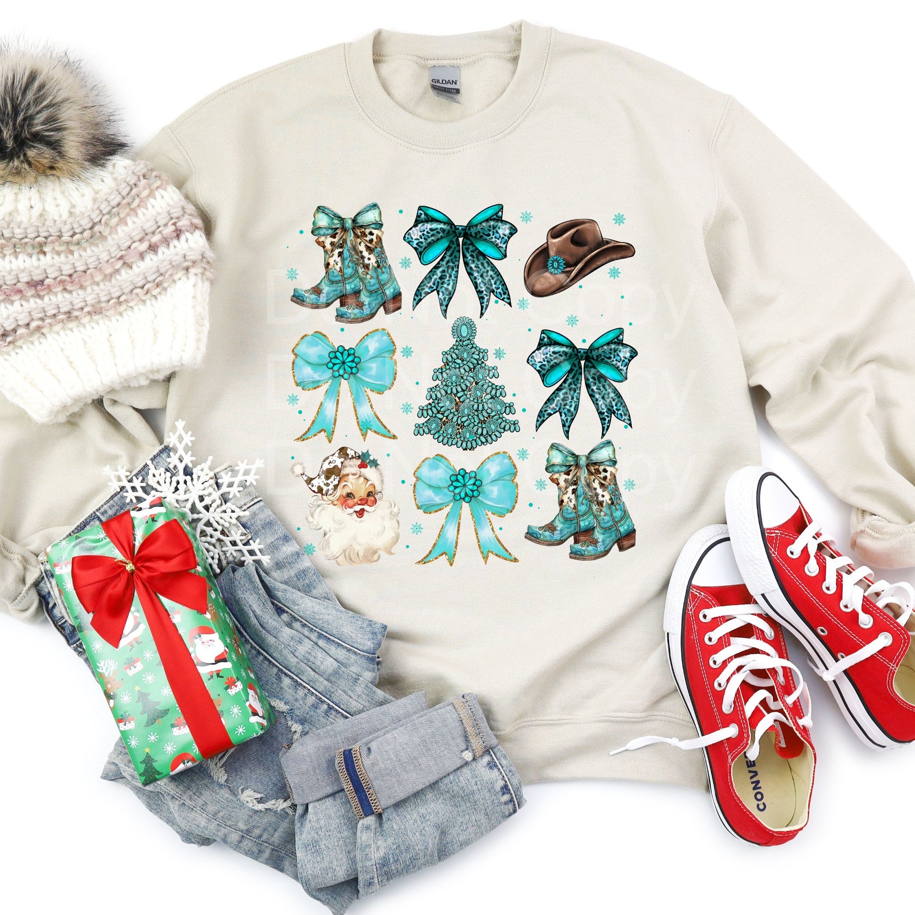 Turquoise Christmas Collage DTF Transfer (E)